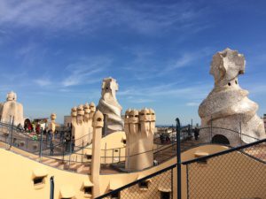 We started our first full day with a somewhat damp Sandemans walking tour. On the tour we got insight into some interesting Catalonian things: the moving of old buildings stone by stone for the revamping of the city, a review of the complex history and politics of the region, the hilariously dull School of Architecture building (with Picasso mural), the ‘crapper characters’ sold in tourist shops (seriously, this is a thing…), and some good advice on where to eat tapas. This region’s identity is clearly very different to where we had just been in Andalusia.