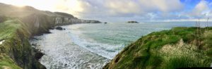 UTake a look at the bucket list for all the things we saw on that day: Carrickfergus Castle and up the Antrim Coast through to Bushmills Distillery on the list. Our guide and bus driver were awesome and since it was quiet season we didn’ have to deal with lines at any loactions. This was particularly important for the Carrick-a-Rede Rope Bridge where timed tickets are issued – we enjoyed the quiet and elevated coast walk and waited only a few minutes to cross the bridge once there. A beautiful area as you can see in the photo below! It was very cold later in the afternoon as it had snowed in some areas overnight, but we literally and figuratively ‘warmed up’ at the distillery as the daylight ended!