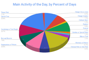 - On both these continents we spent a similar percentage of days exploring (11%), visiting gardens or special parks (3%), going on special tours (25-27%), and visiting theme parks (0%).